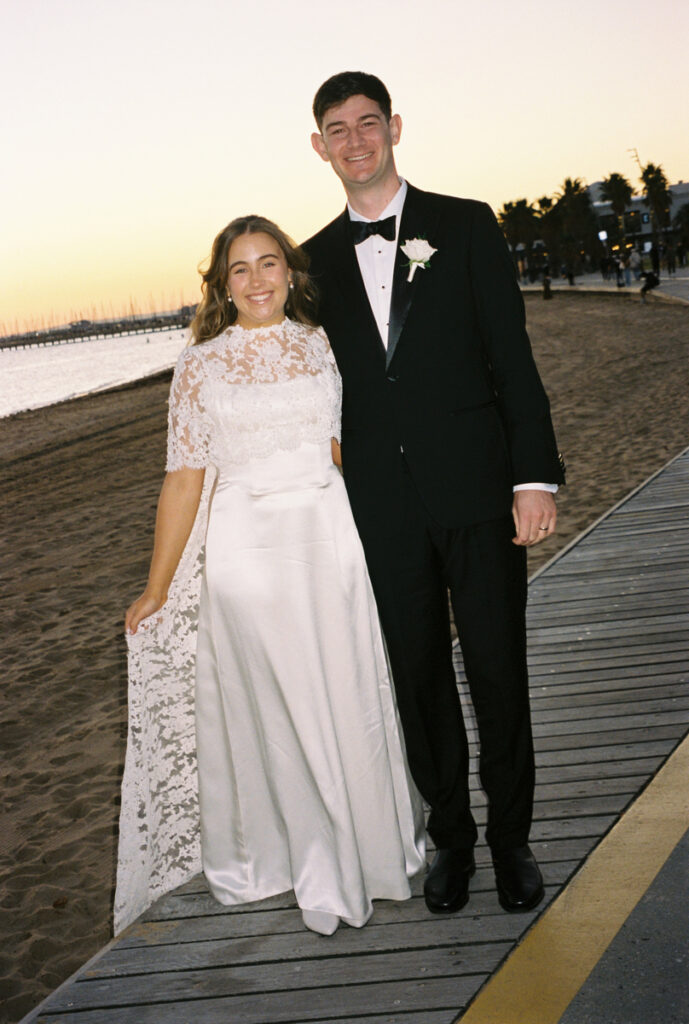 Emma & Awtel’s Melbourne wedding unfolded with the effortless elegance only Stokehouse can offer — sun spilling across the bay, champagne fizzing in crystal, and the hum of the city just beyond the waves. Captured on 35mm film, every frame felt drenched in nostalgia; the soft grain and gentle tones turning stolen glances, windswept hair, and seaside laughter into something timeless. It wasn’t just a wedding — it was a love story bathed in salt air and golden light.