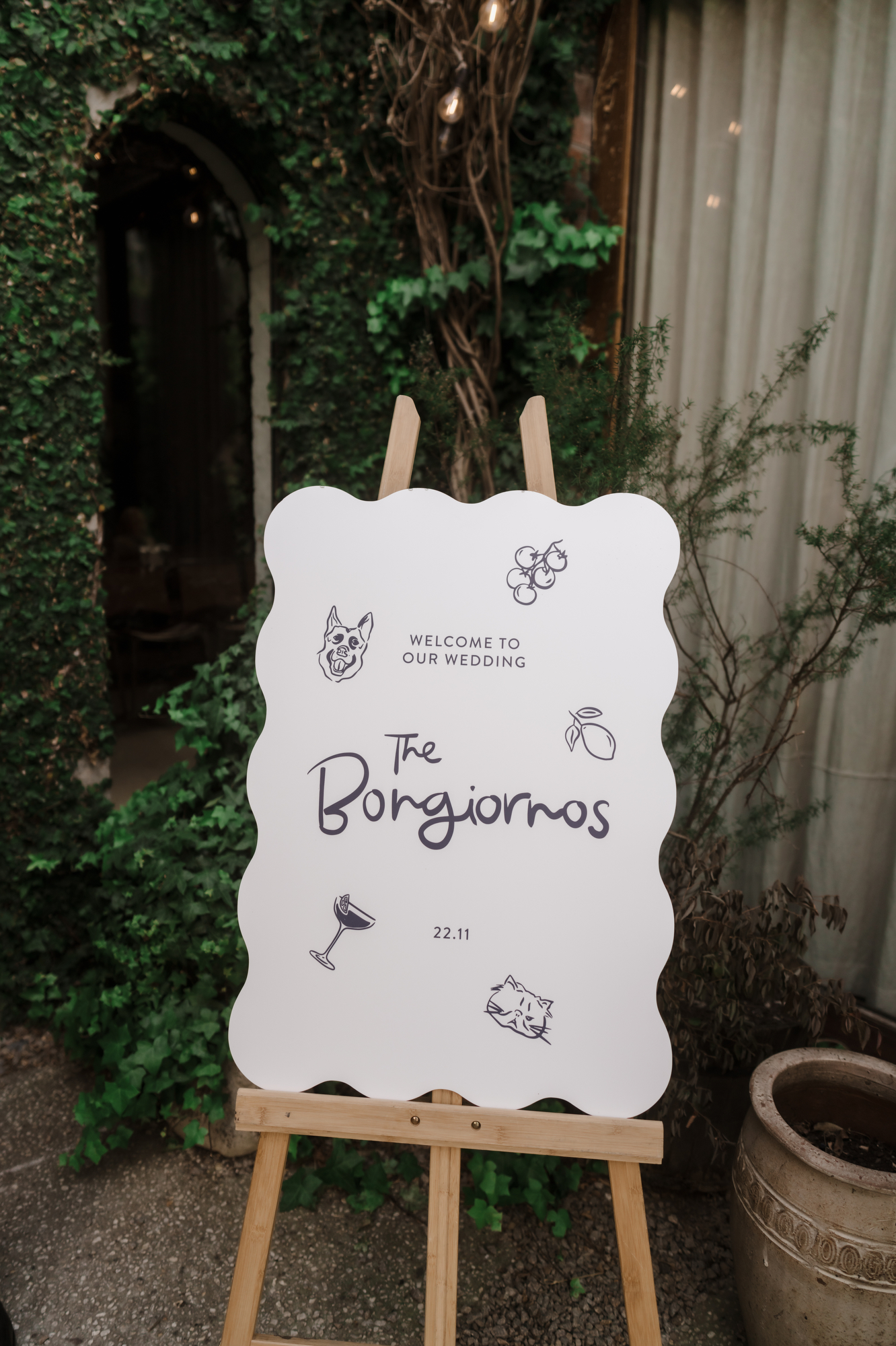 What was the inspiration behind the style of your wedding? It was so important for the wedding to feel like us. We wanted the day and styling to be beautiful and timeless, while at the same time ensuring there were personal touches that were unique to us. For example, we wanted to bring our fur babies Molly and Moody into the day, who weren’t able to be there but are a huge part of our lives. We also wanted to speak to our heritage and upbringing, Megan’s being a coastal town in New Zealand and Stephen’s Dad’s family being Italian, and our surname being Bongiorno! One way this came to life was through our wedding stationary, which was designed by one of Megan’s best friends and bridesmaids Tyne, who is the creative genius behind Hey Lola Design.
