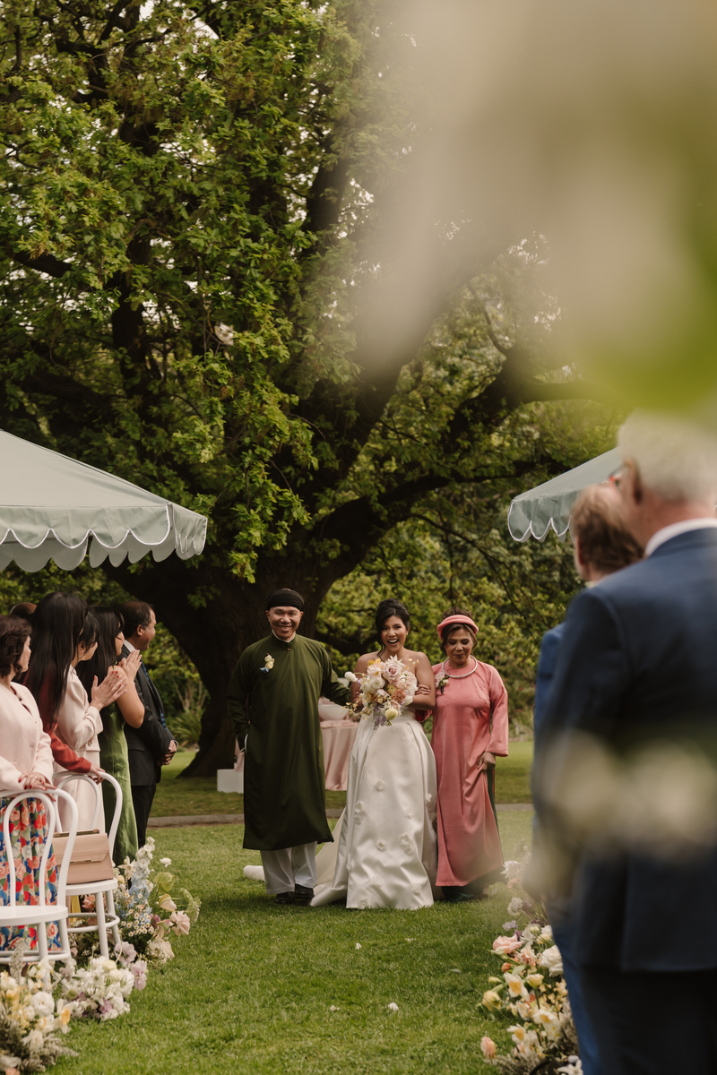 I love working with Jessie of Ruby & James. After a week of wild weather, the rain, wind and clouds cleared for Thao & Carls big day. They had been planning it for over a year, so we were ecstatic to see the sun shining, as it meant their ceremony would take place outdoors in the gardens.