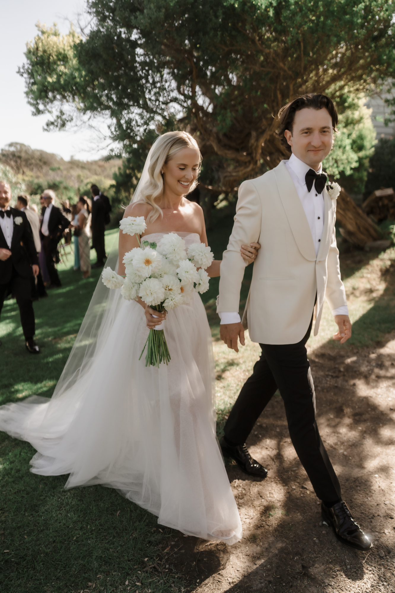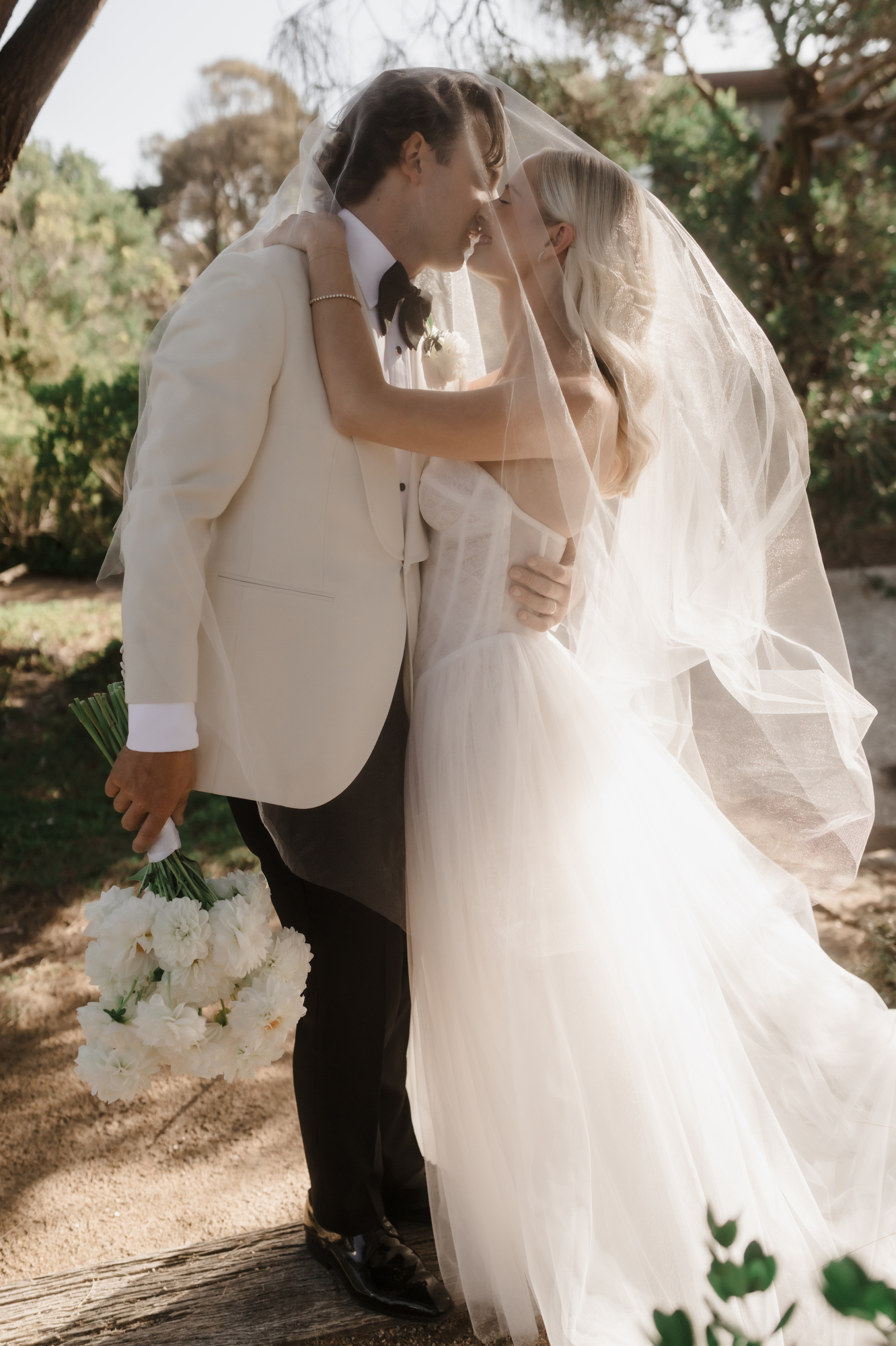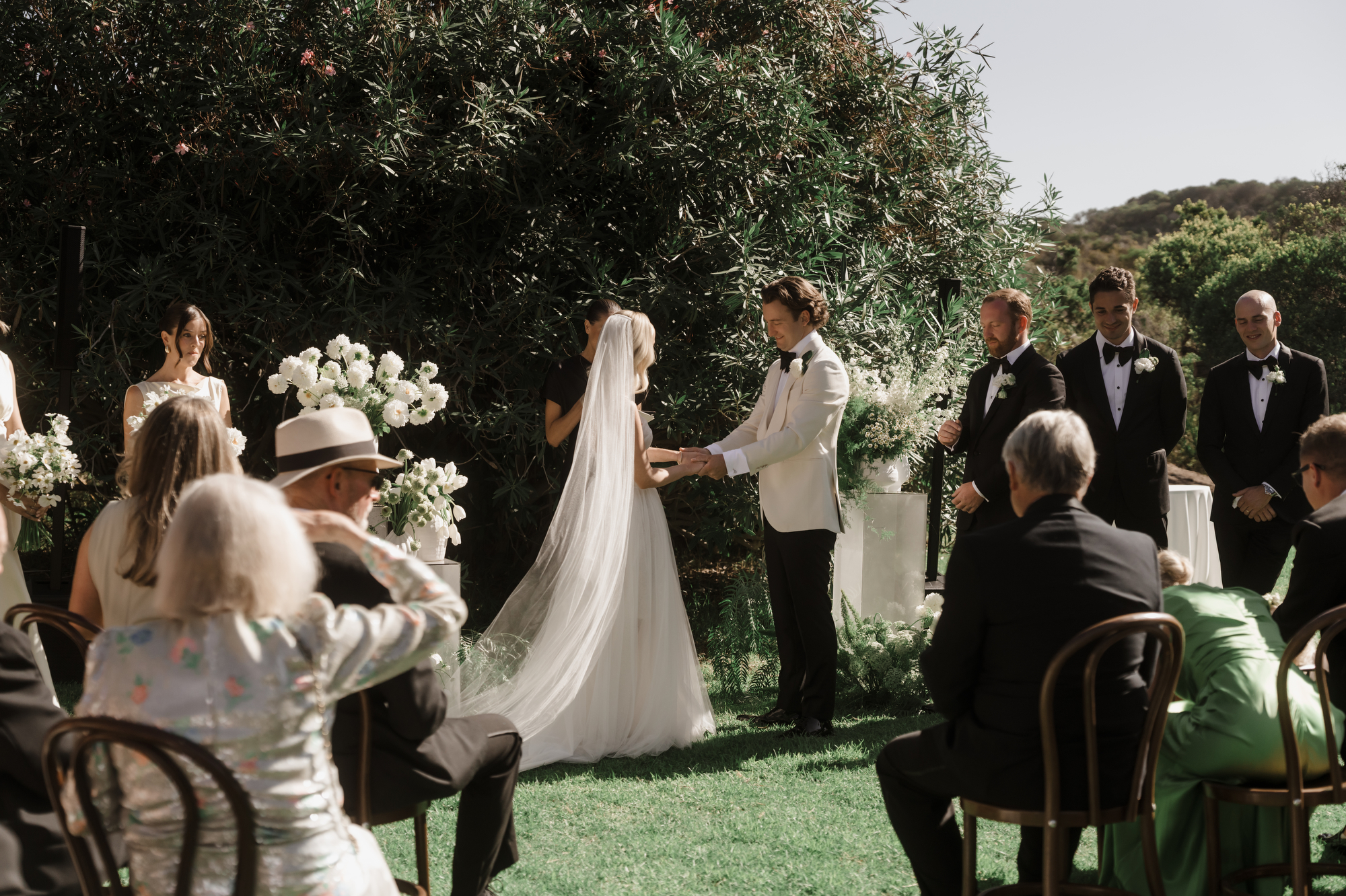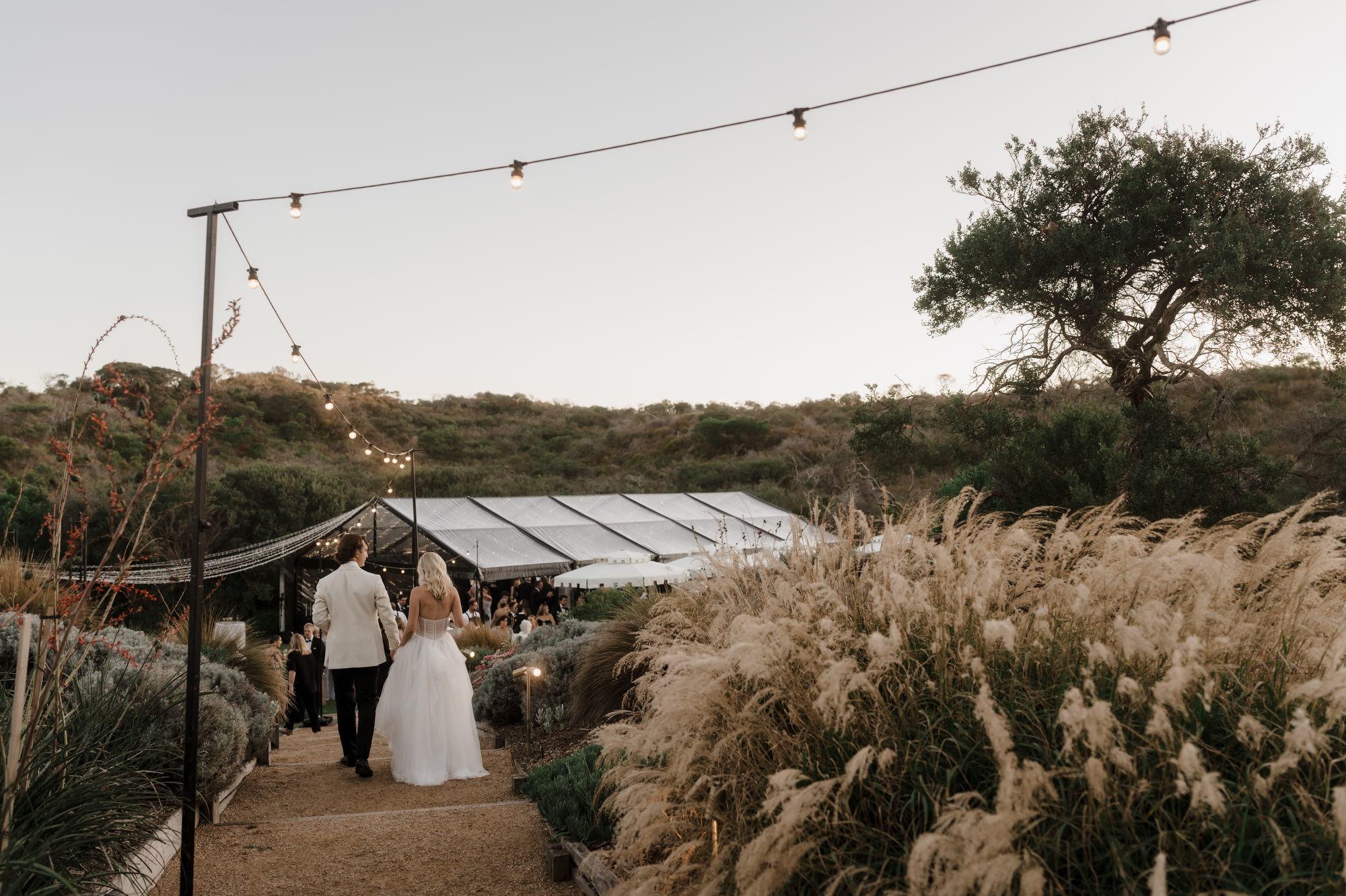 Olivia & Jonny held their magical garden wedding at Olivia’s family property in Sorrento. Pitched on a stunning hilltop, their ceremony took place at her grandparents garden, with a whimsical hidden path taking guests to the reception at a Marquee at the adjacent private property, also owned by her grandparents.