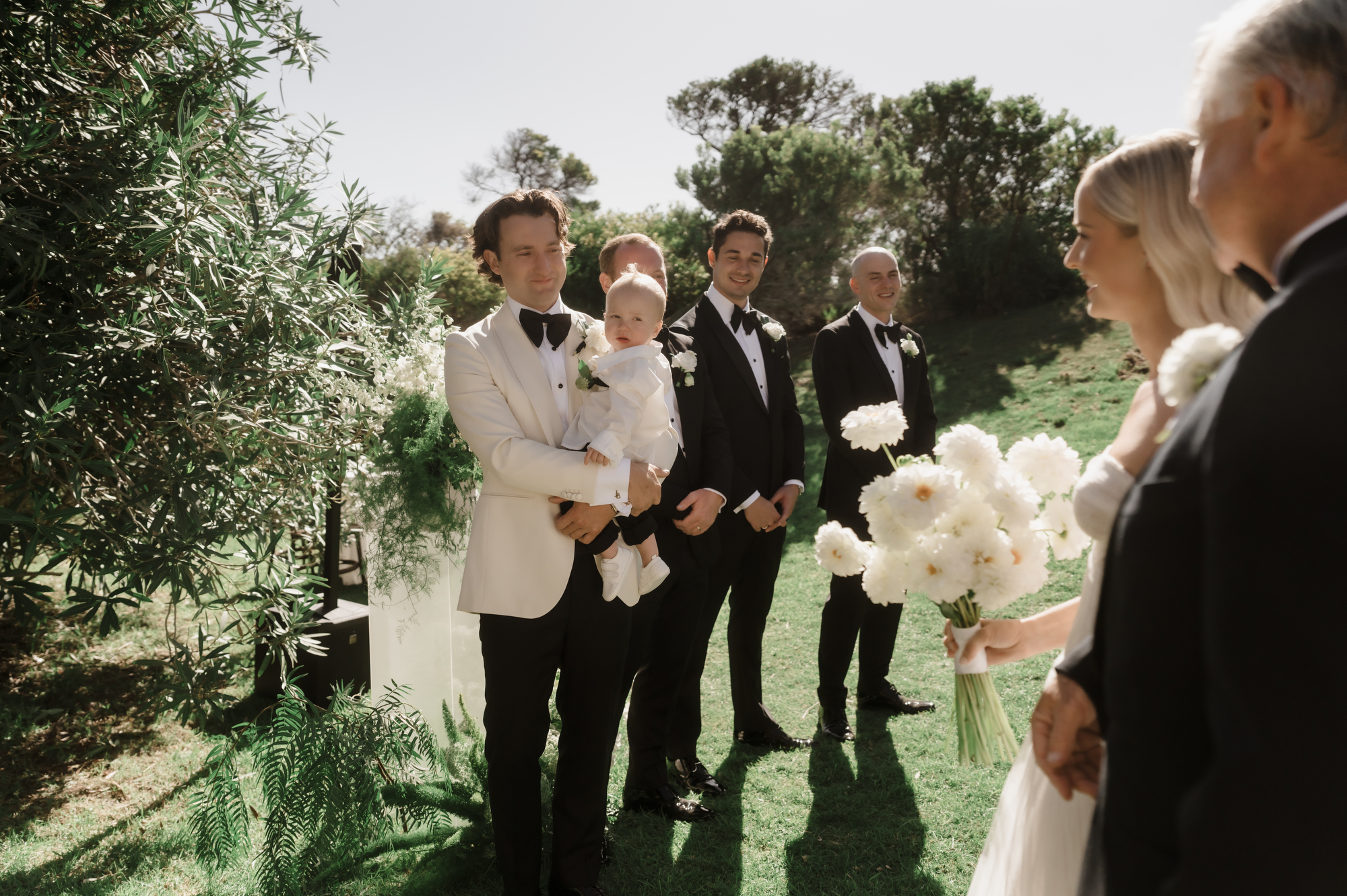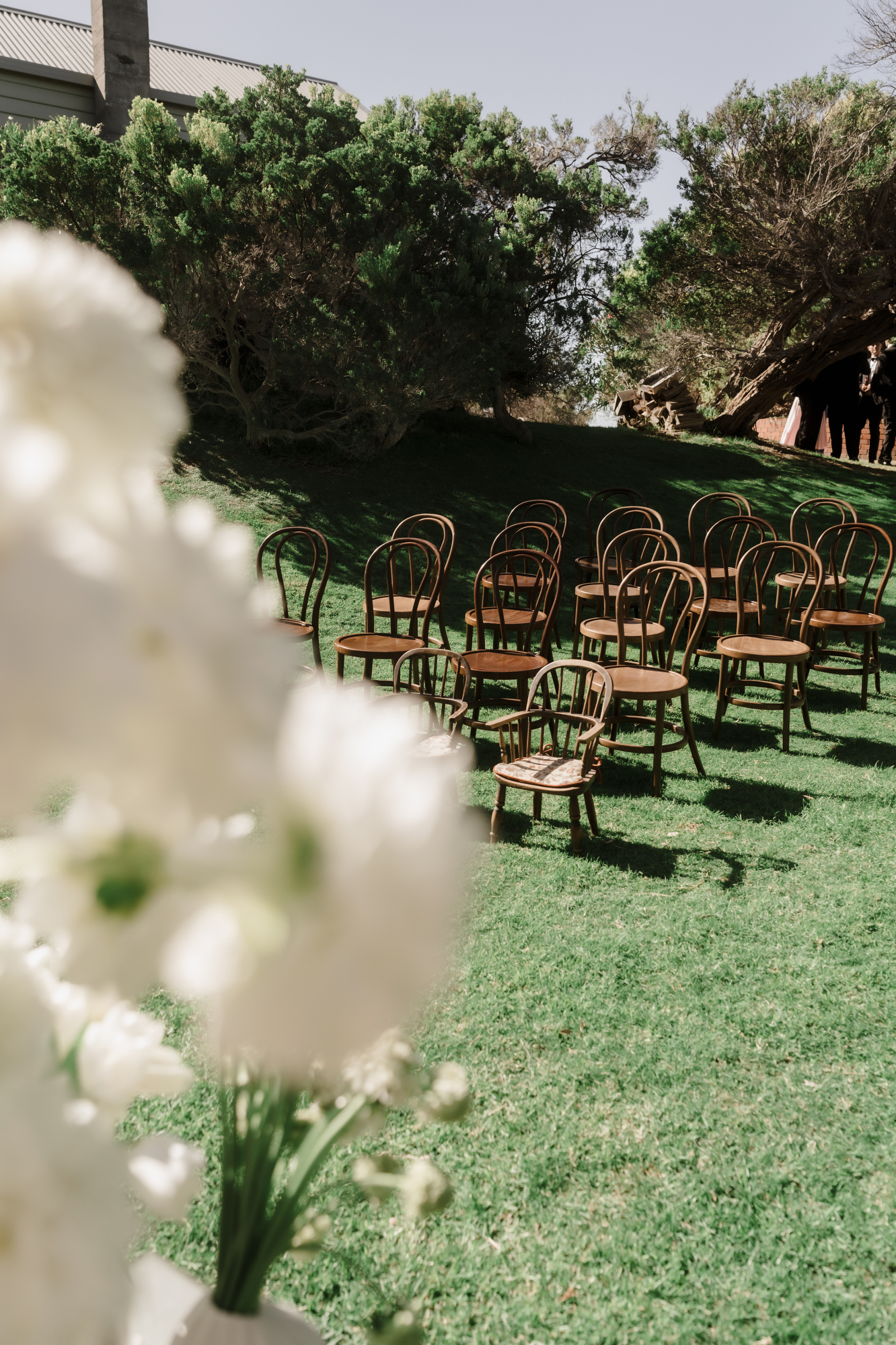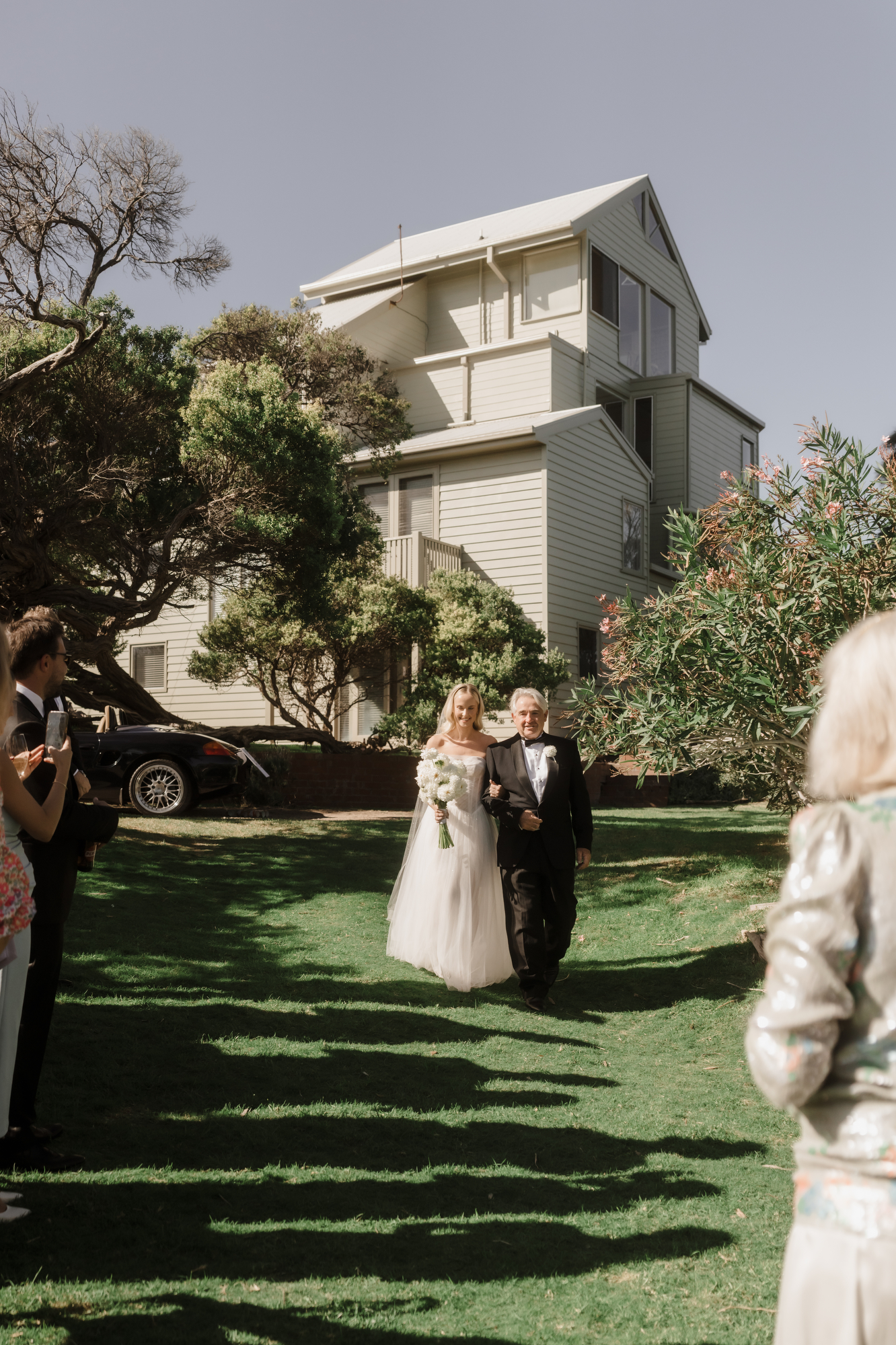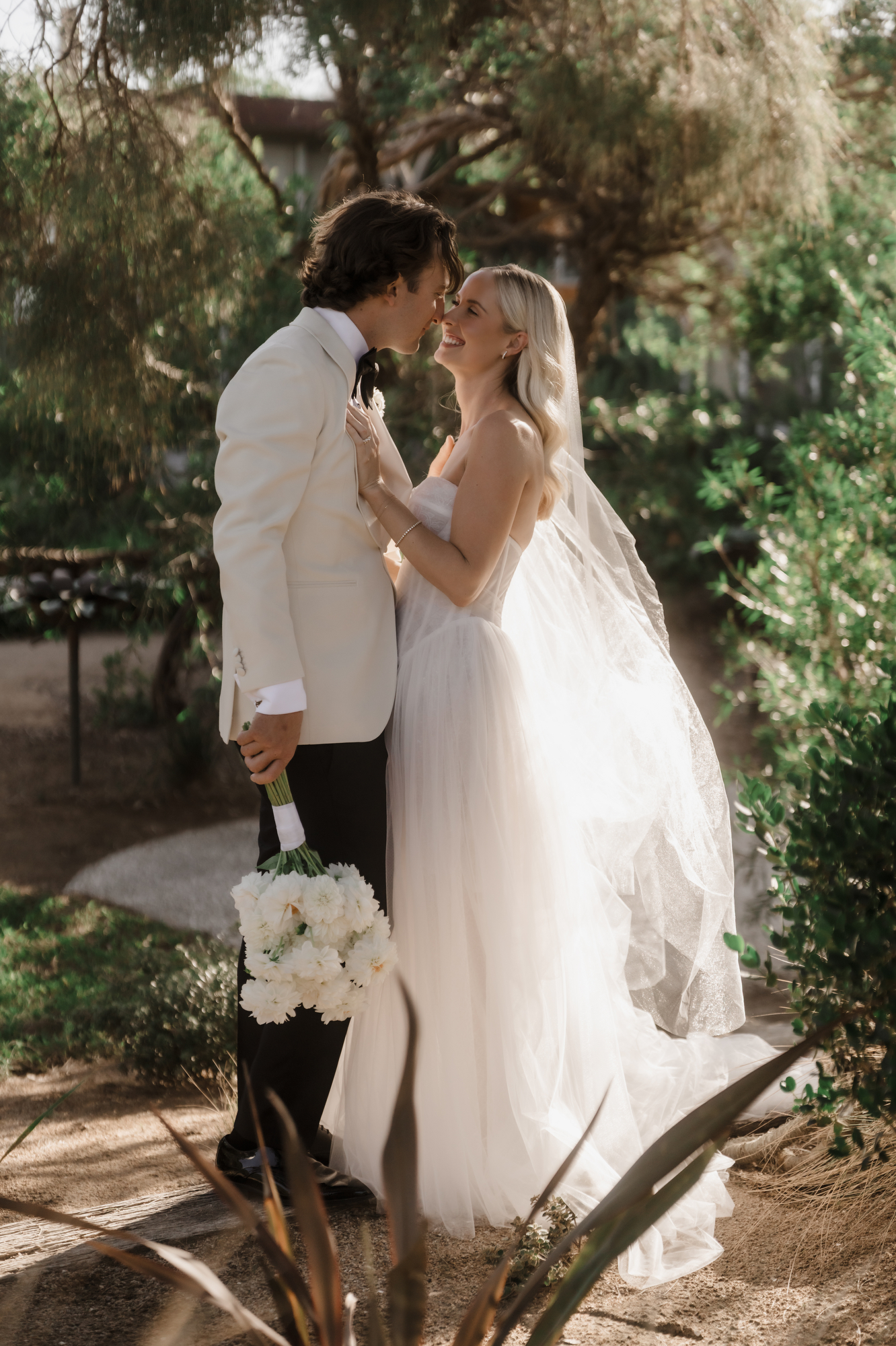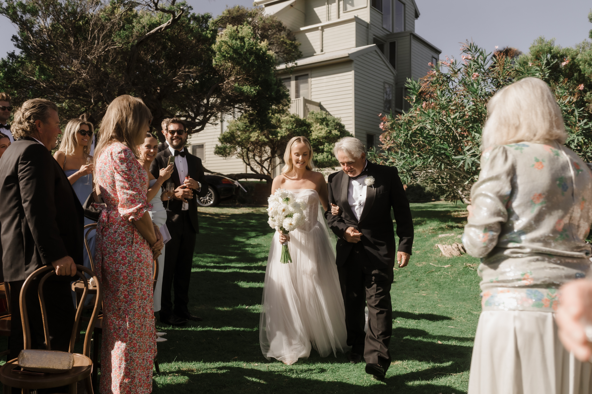 Olivia & Jonny held their magical garden wedding at Olivia’s family property in Sorrento. Pitched on a stunning hilltop, their ceremony took place at her grandparents garden, with a whimsical hidden path taking guests to the reception at a Marquee at the adjacent private property, also owned by her grandparents.