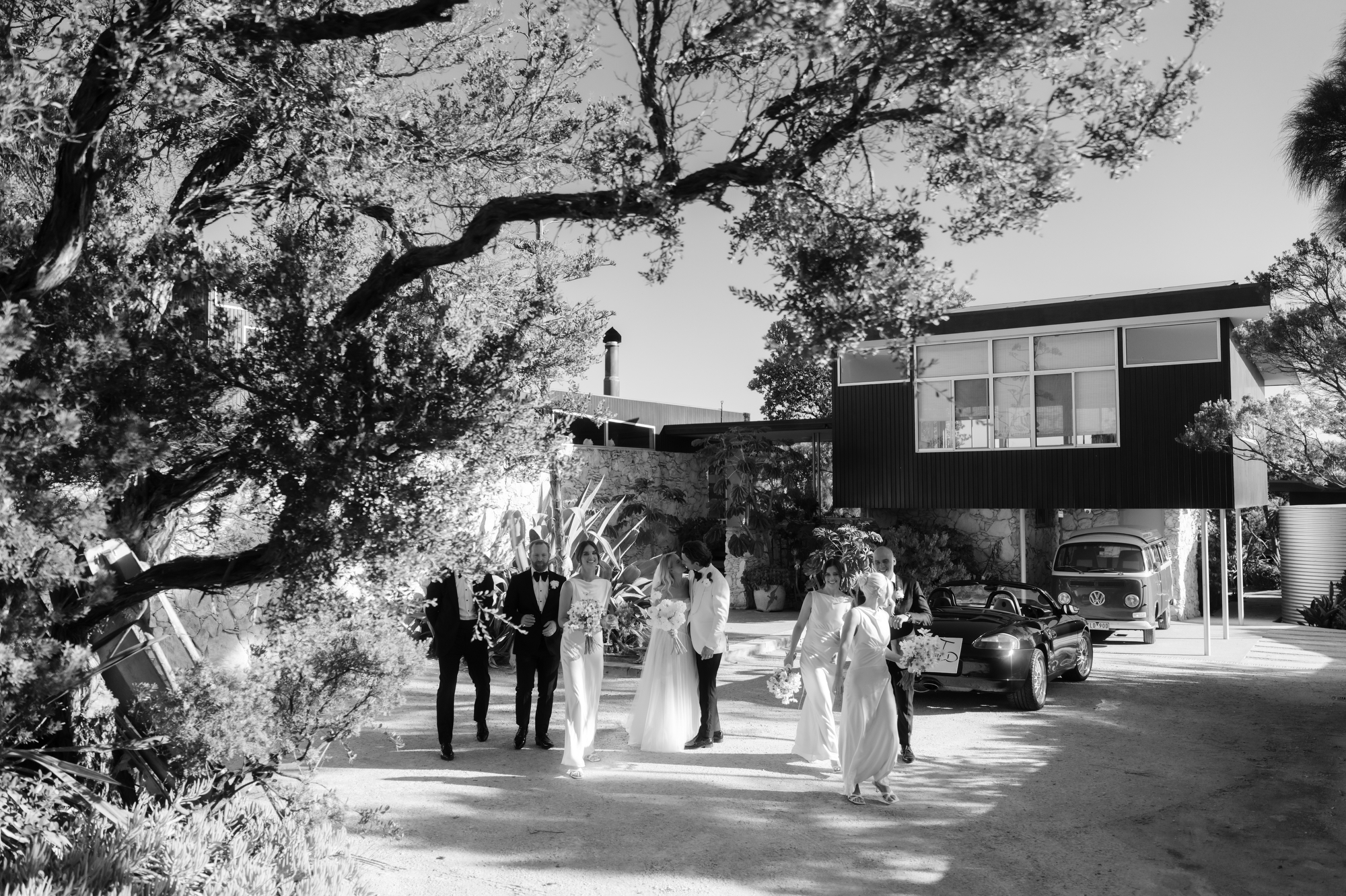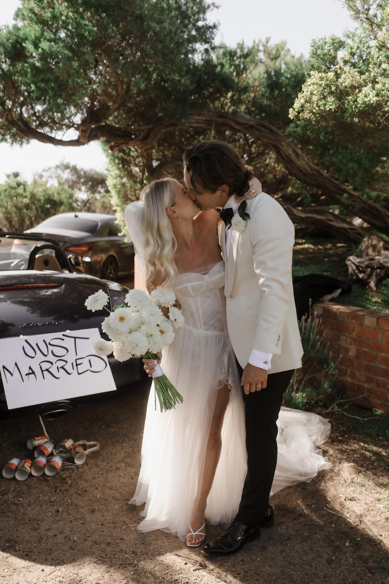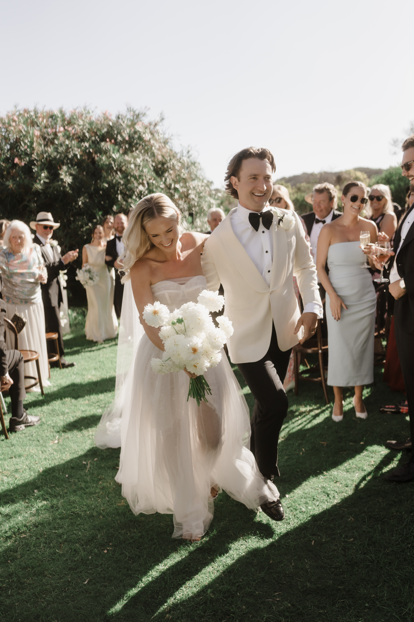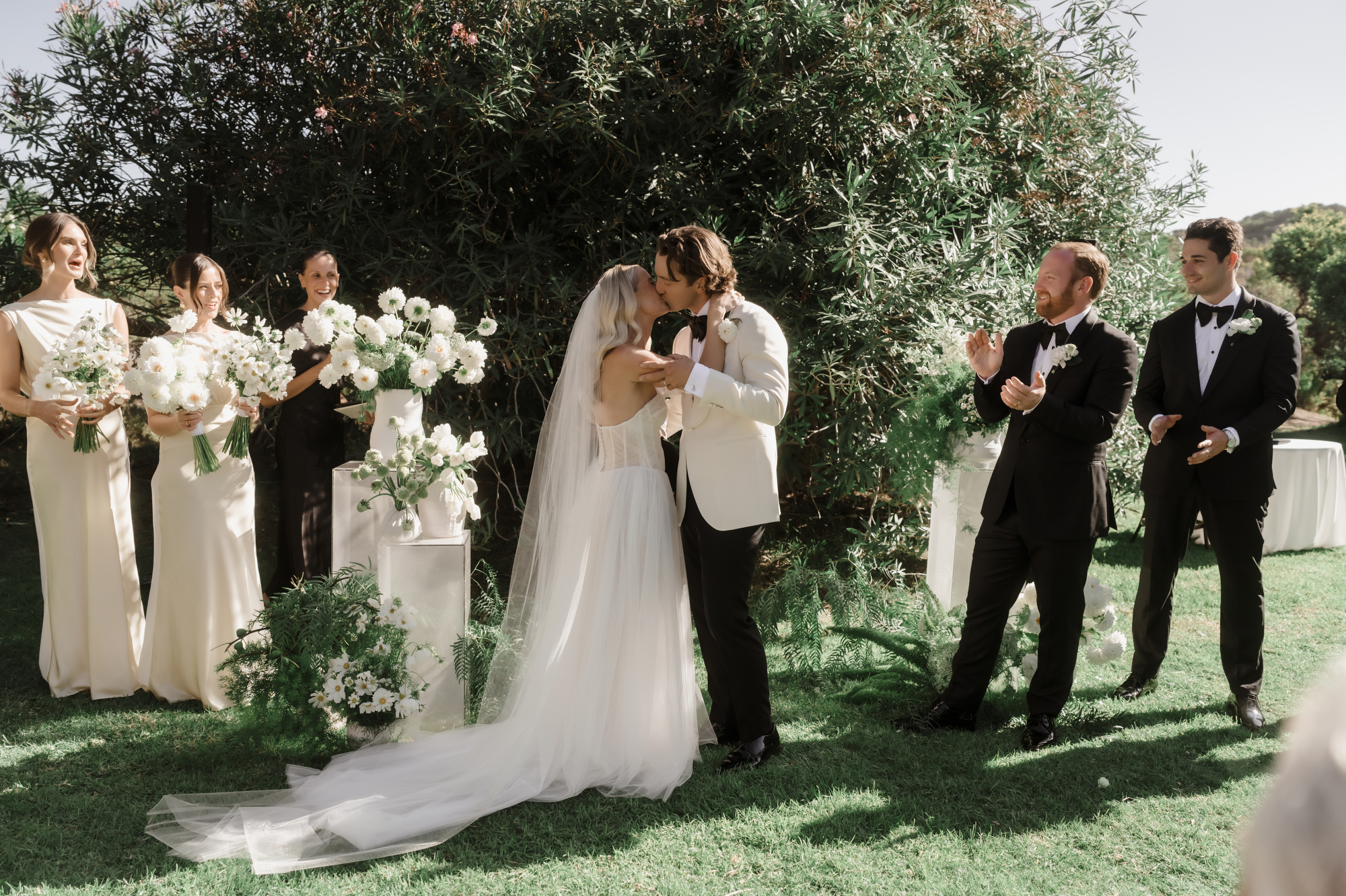 Olivia & Jonny held their magical garden wedding at Olivia’s family property in Sorrento. Pitched on a stunning hilltop, their ceremony took place at her grandparents garden, with a whimsical hidden path taking guests to the reception at a Marquee at the adjacent private property, also owned by her grandparents.