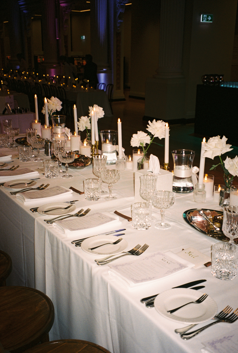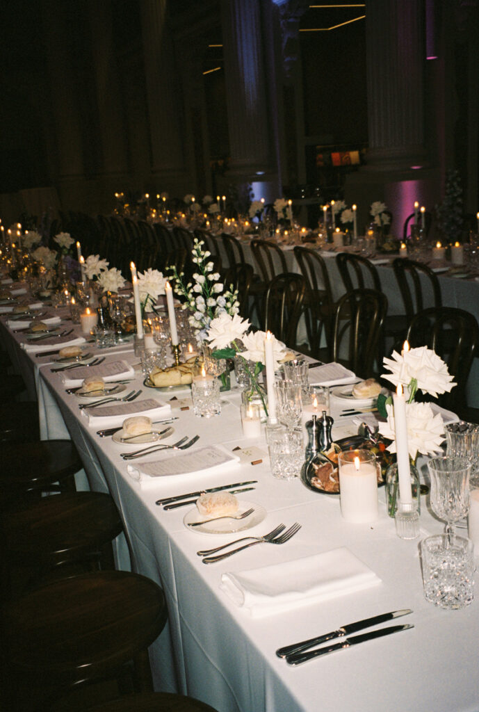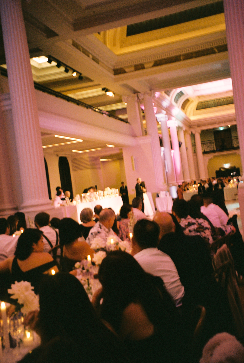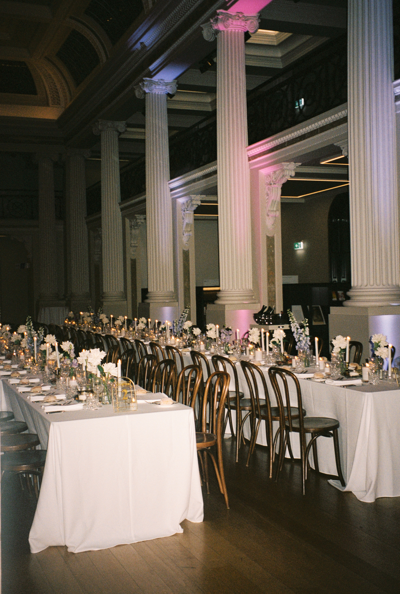 They held their wedding at the iconic State Library of Victoria — one of those spaces that feels sacred even when it’s full of life. It’s open to the public until 6pm, so we enjoyed the slower part of the day at Hotel Windsor, for their preparations and St Patricks Cathedral for their nuptials. The reading room at the State Library is such a fabulous place from above and on ground level. The Cocktail Hour was held here, before moving into the Ian Potter Hall for the Reception.
