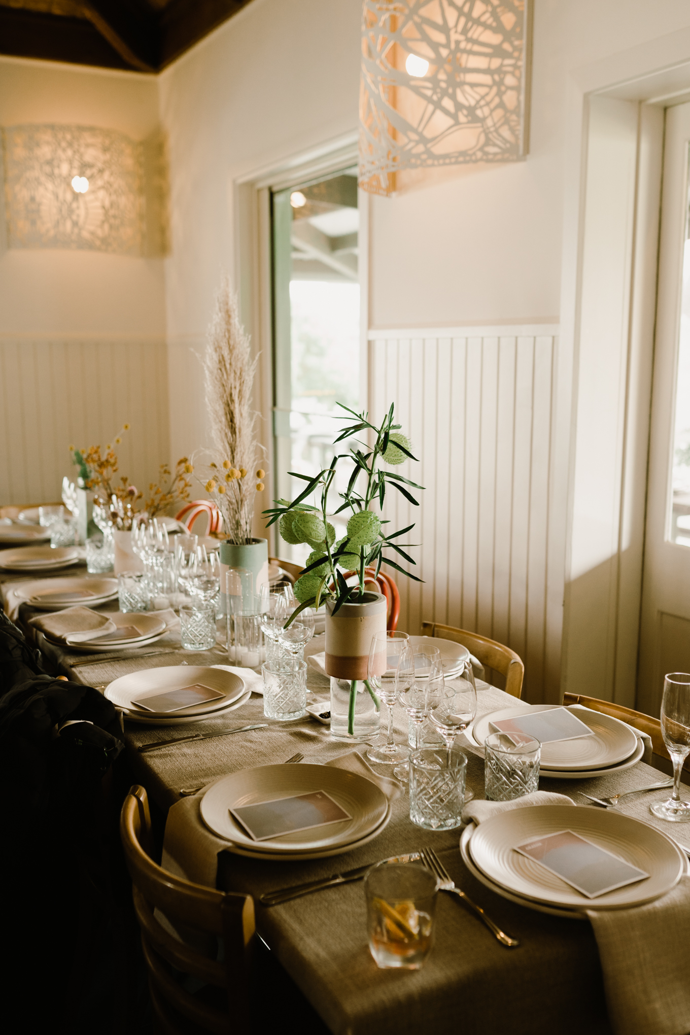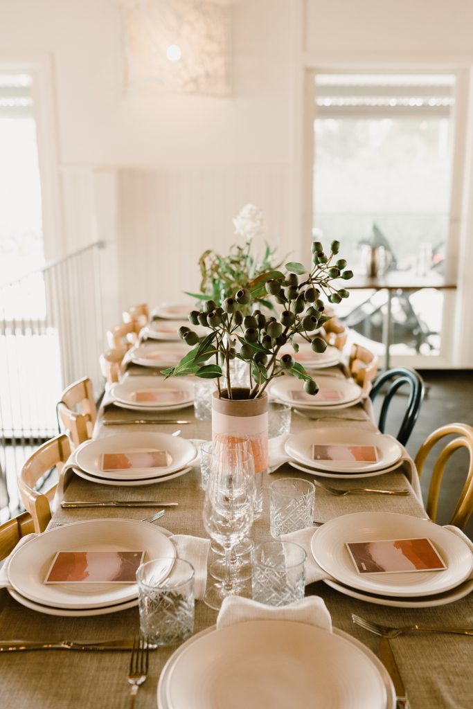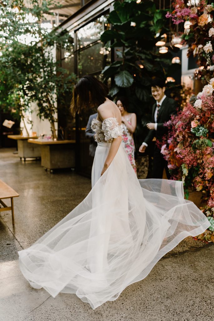 Their florist, Georgia Powell – created a sweeping ribbon of flowers that would start from the entrance, sweeping through the dining area, looping over the beams before ending at the bar canopy. It created a massive trend at Rupert on Rupert, with many weddings to follow suit the idea that Georgia for Tricia and Hieu. Have a look at some of the magic below with their larger gallery here.